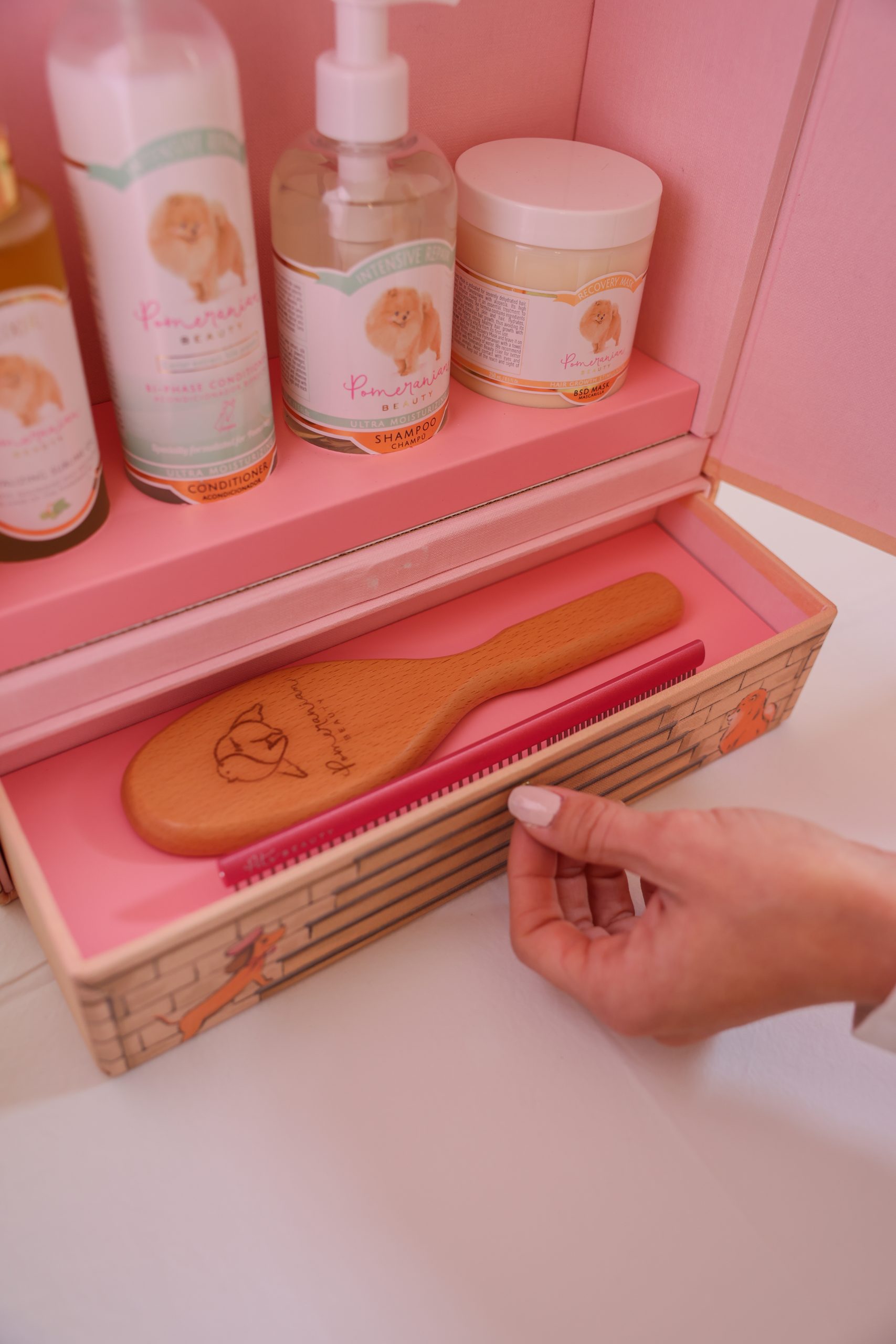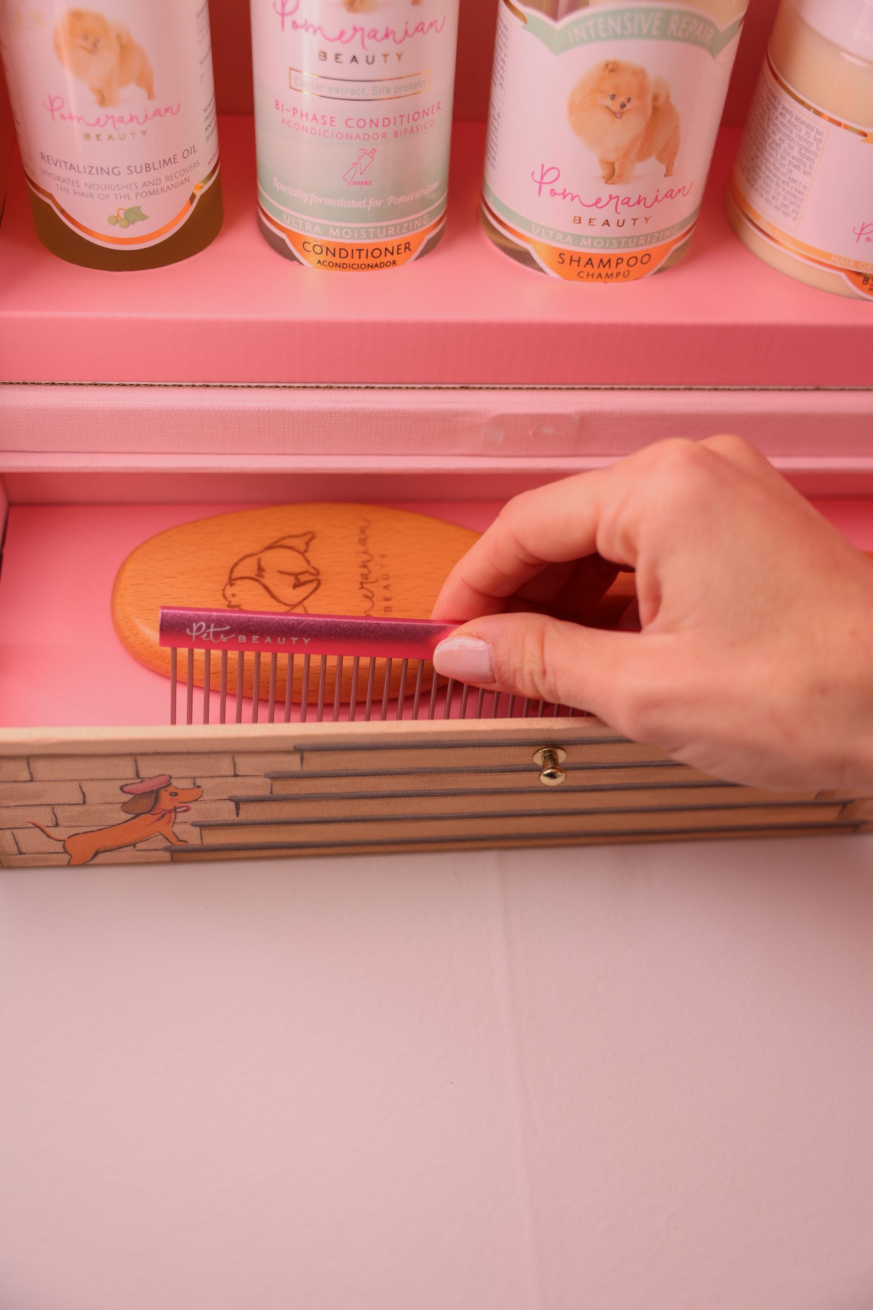 Es el complemento perfecto para organizar y proteger todos los productos de belleza de tu Pomerania, manteniéndolos siempre en un solo lugar y con una presentación impecable.